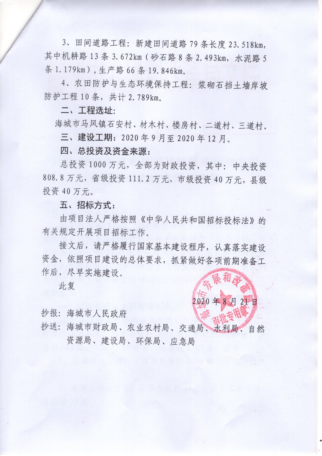 2020年度海城市马风镇高标准农田建设项目