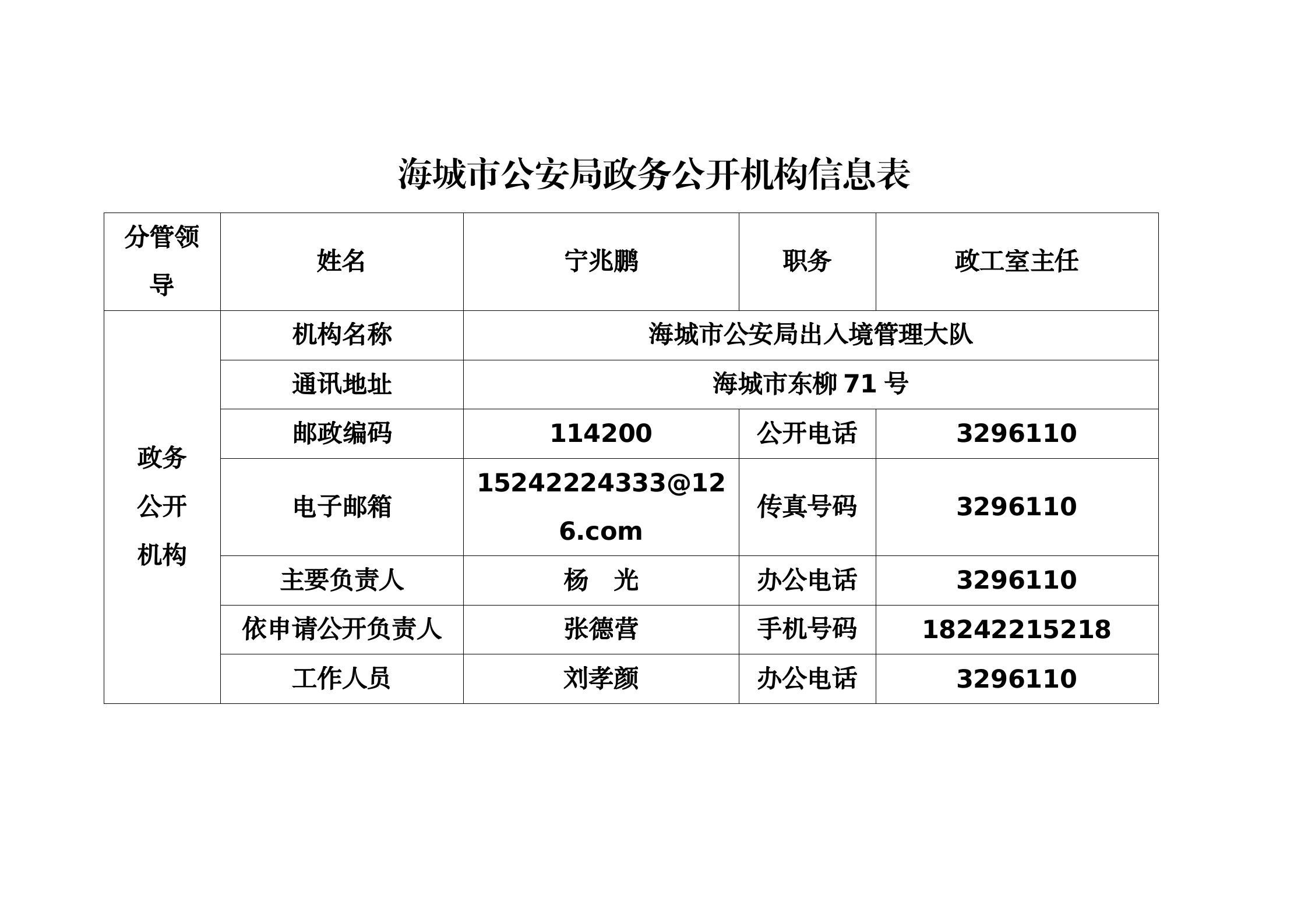 国家税务总局海城市税务局政府信息公开工作机构情况表