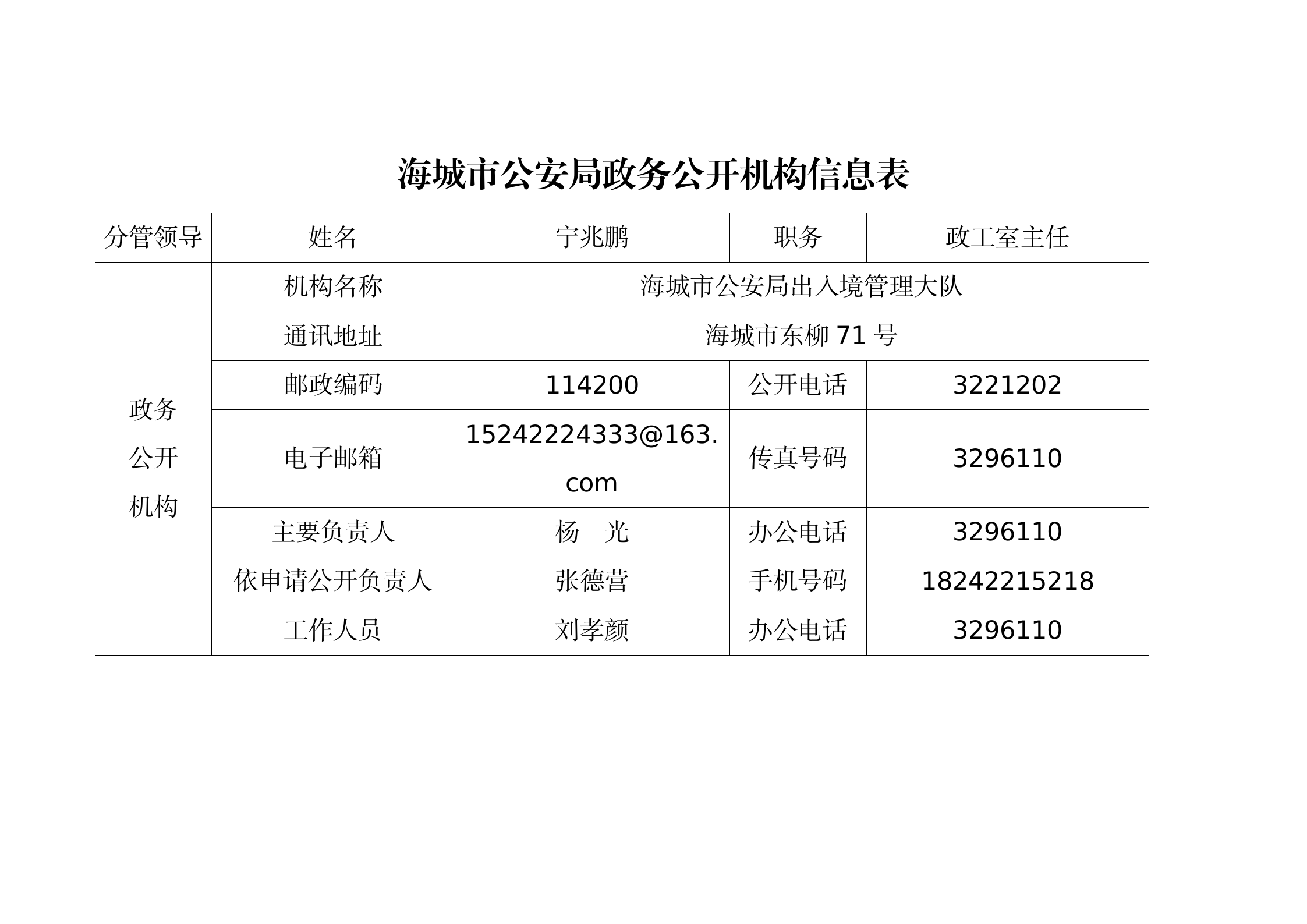 海城市公安局政府信息公开机构信息表