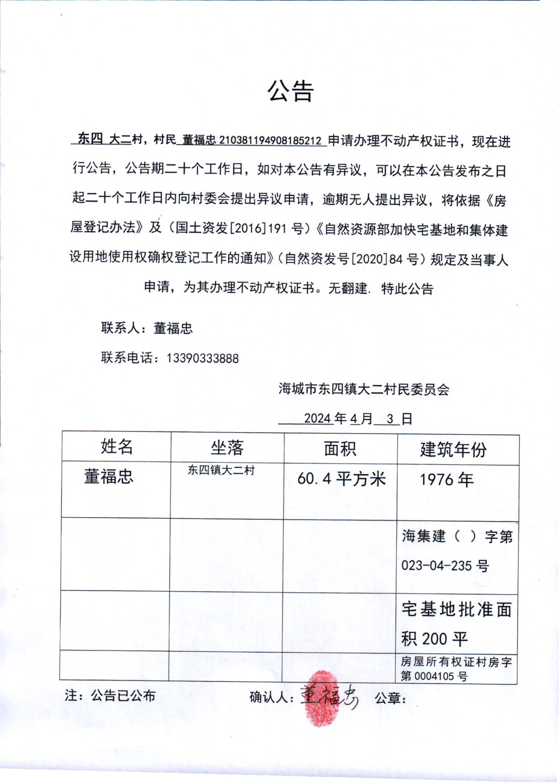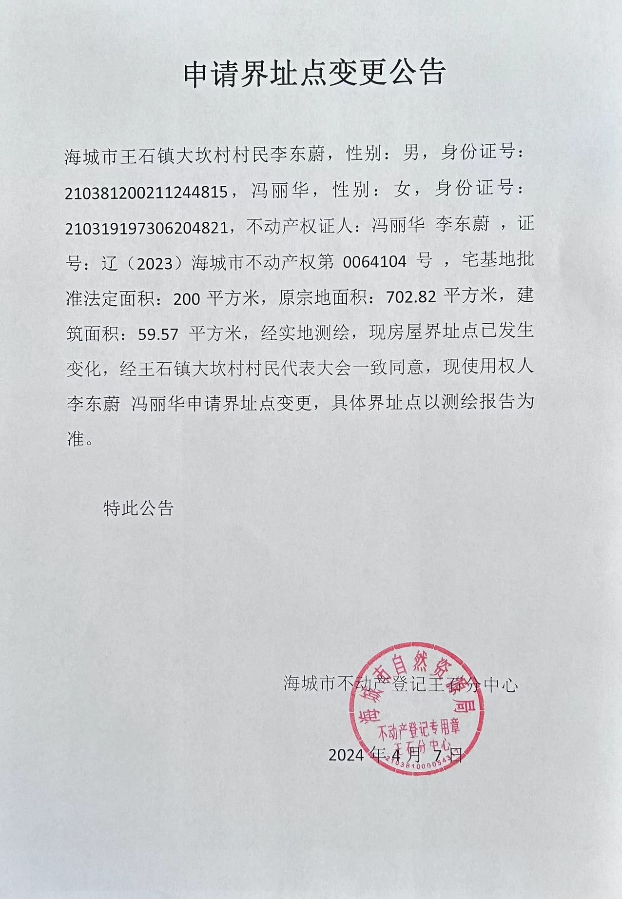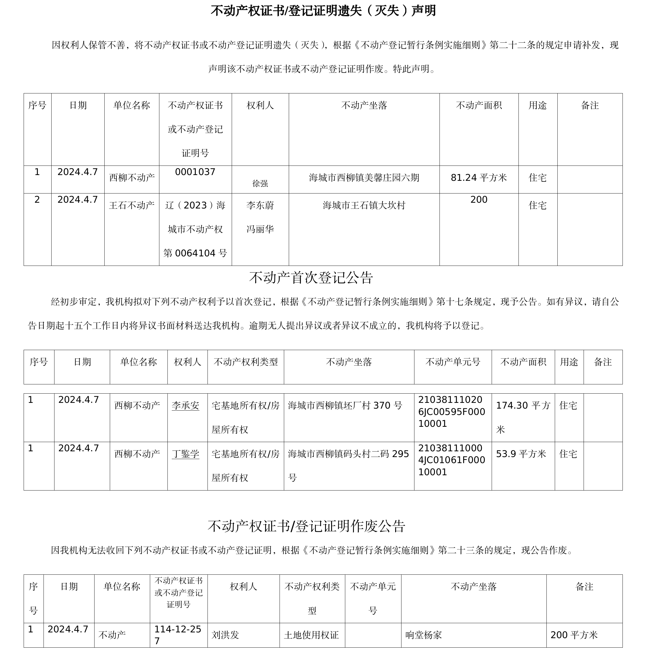 不动产相关信息公告(20240407)