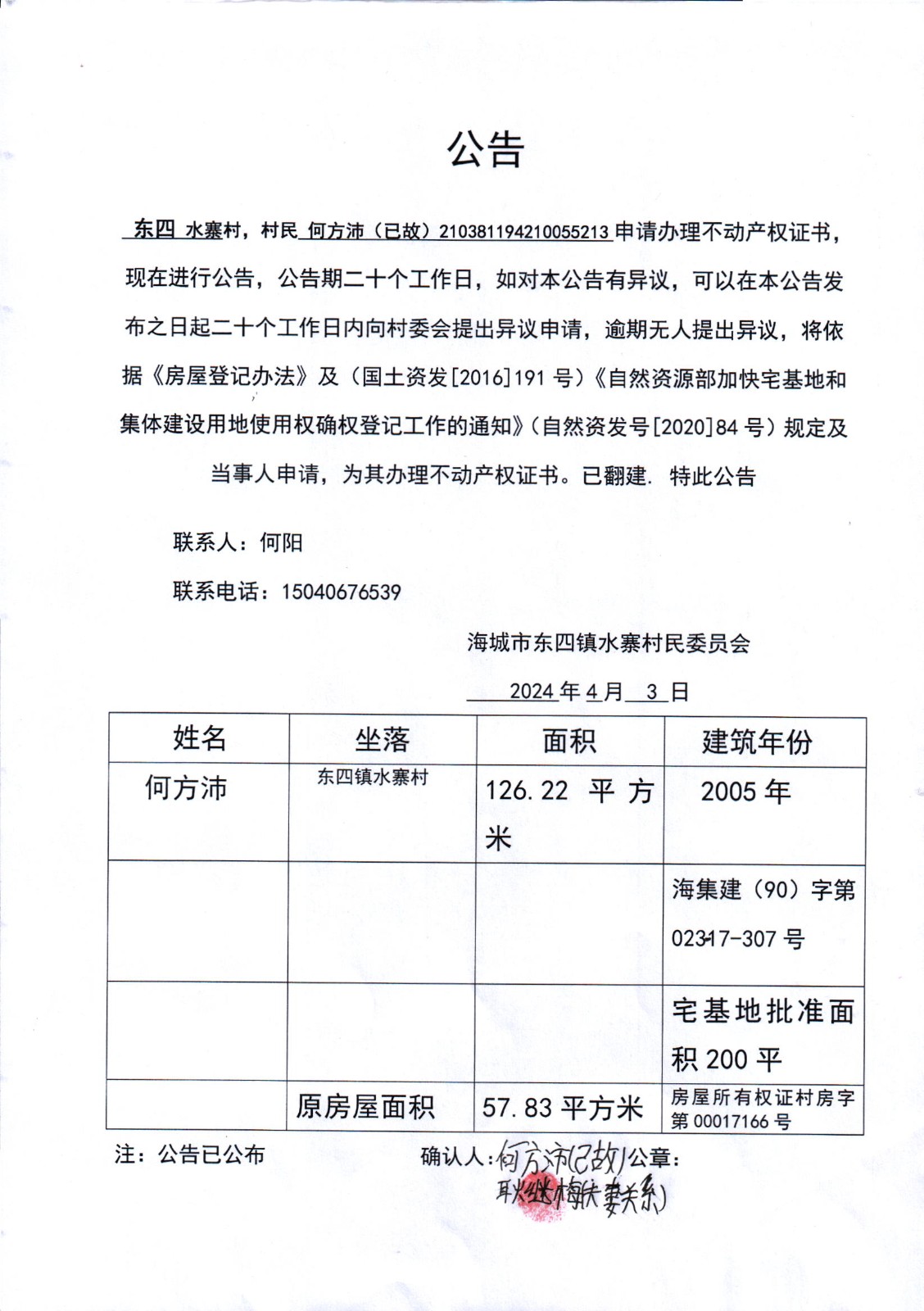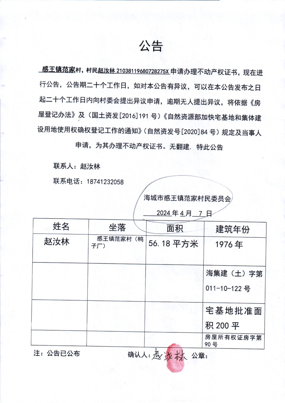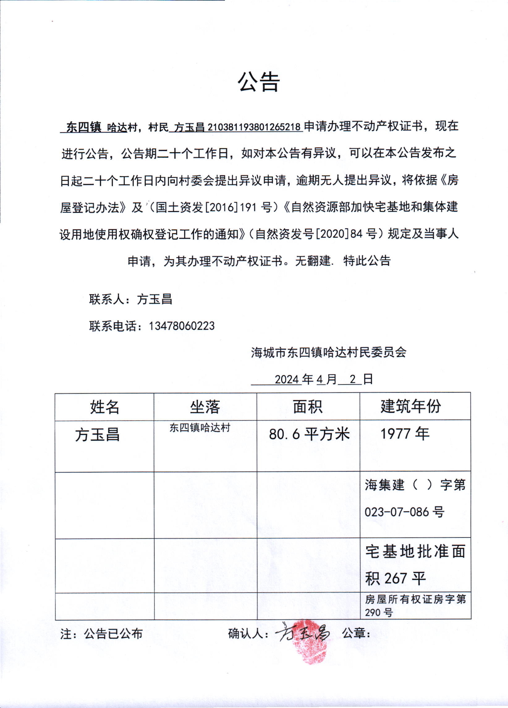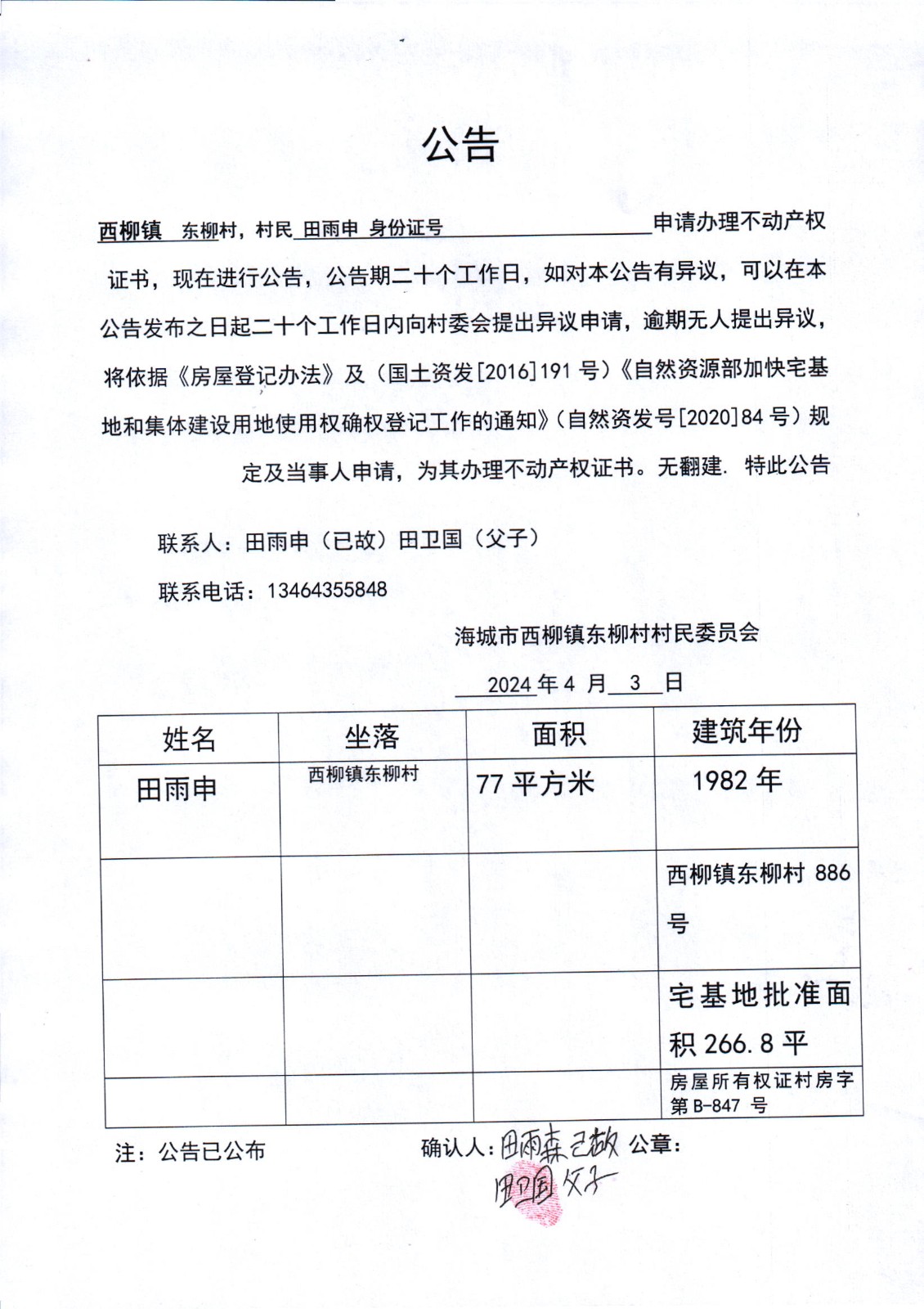 不动产相关信息公告(20240407)