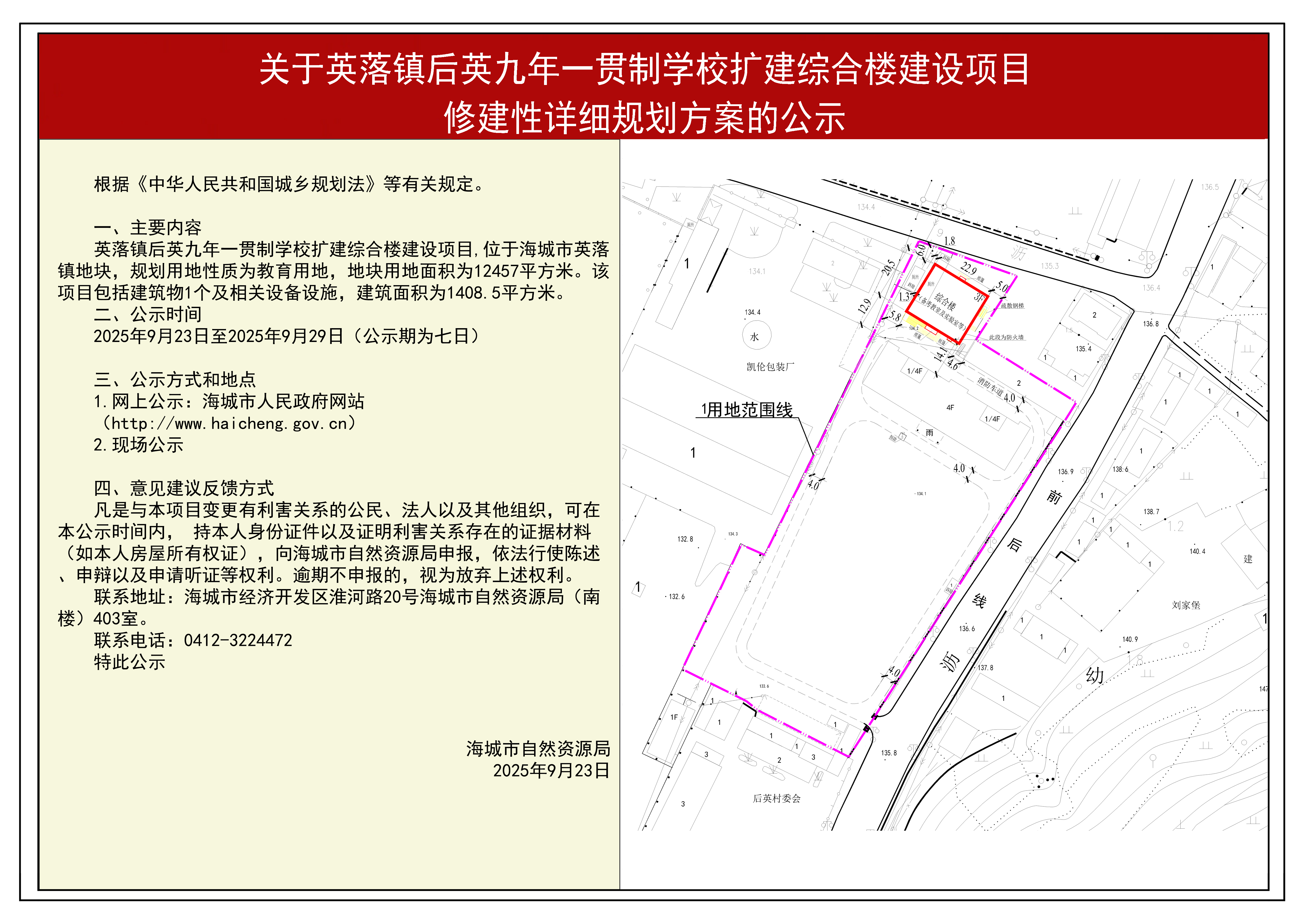 为切实增强规划的科学性、合理性和可行性,征求公众意见,根据《中华人民共和国城乡规划法》第二十六条规定,现将英落镇后英九年一贯制学校扩建综合楼建设项目修建性详细规划方案内容公告如下: