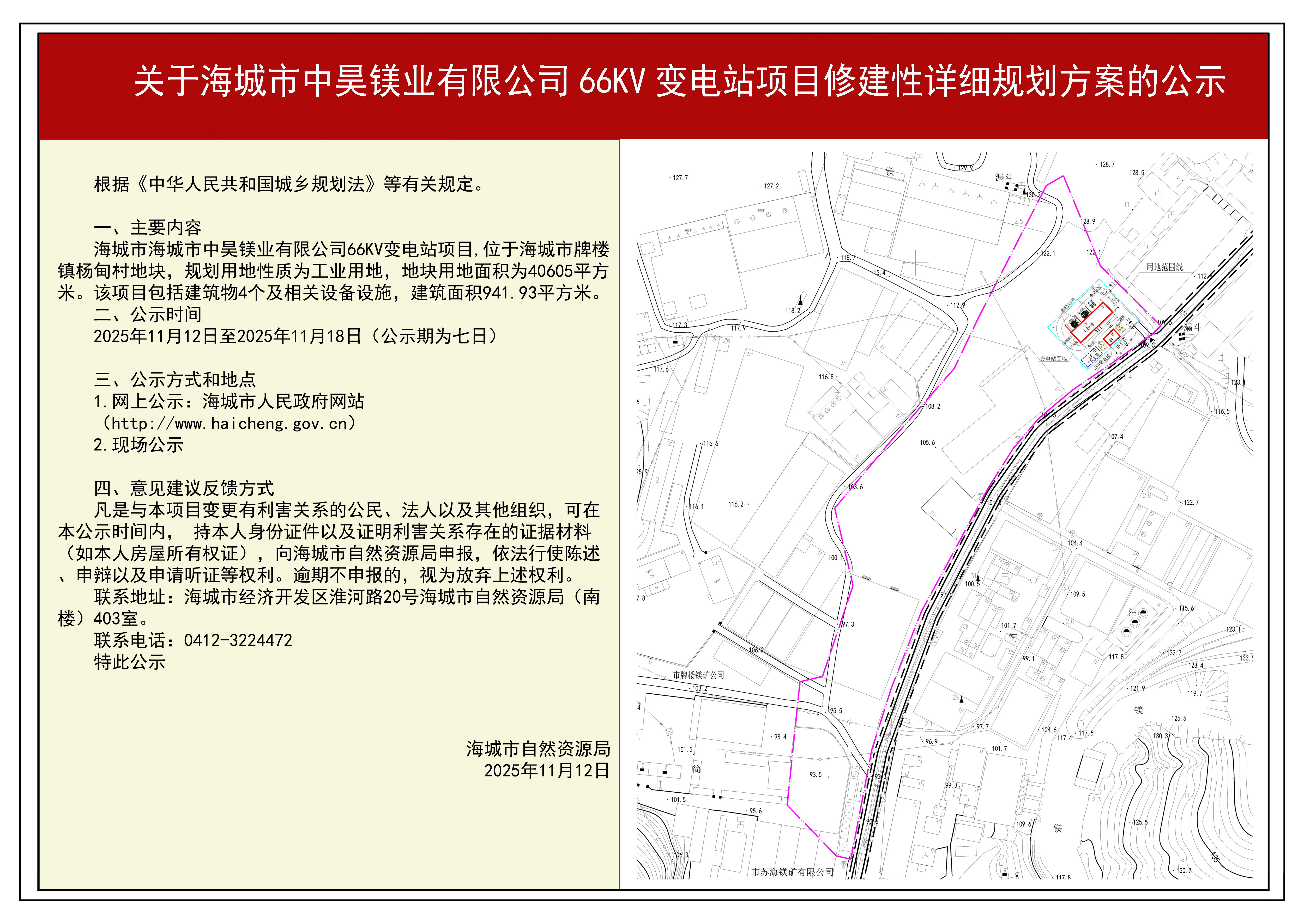 为切实增强规划的科学性、合理性和可行性,征求公众意见,根据《中华人民共和国城乡规划法》第二十六条规定,现将海城市中昊镁业有限公司66KV变电站建设项目修建性详细规划方案内容公告如下: