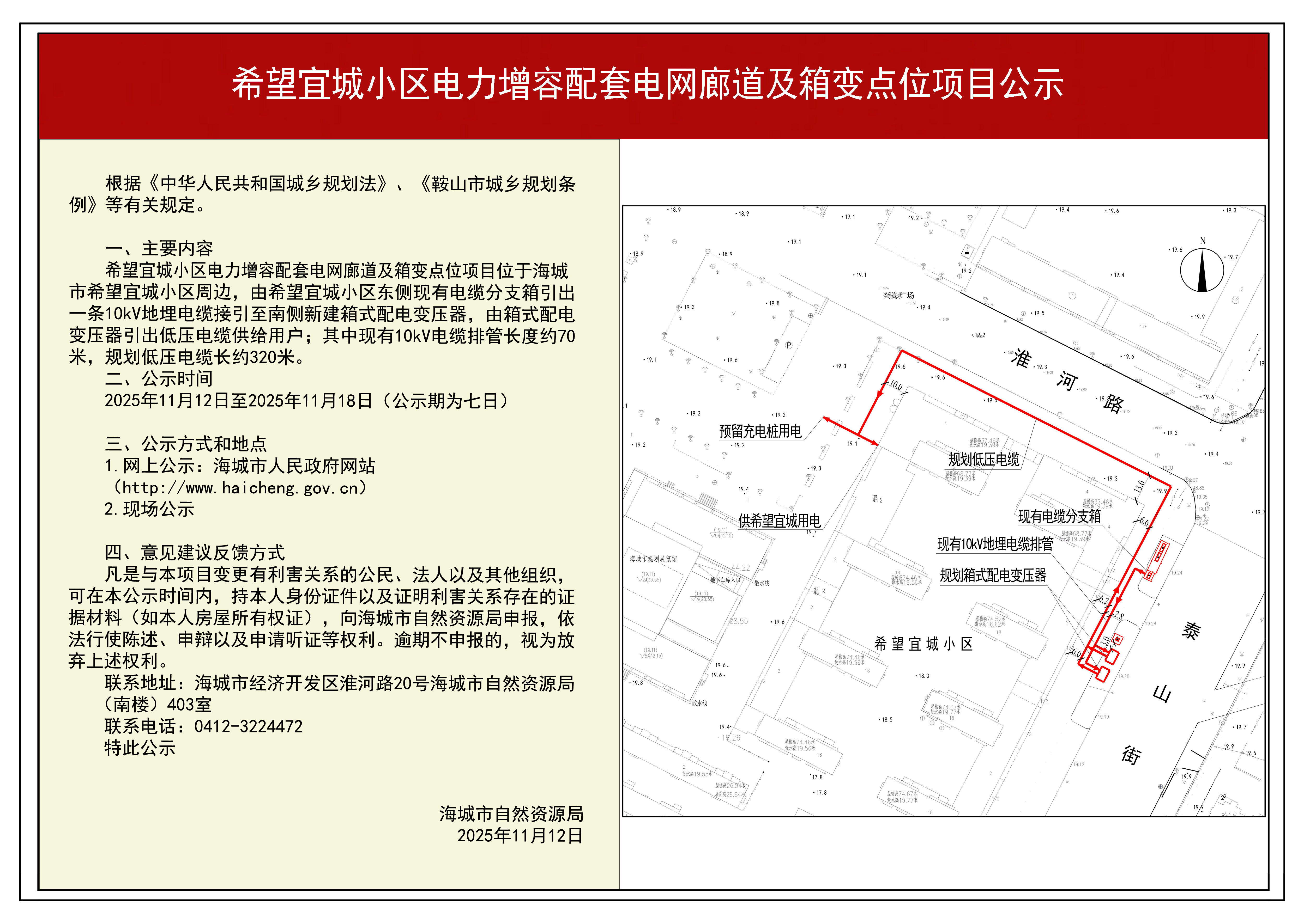 为切实增强规划的科学性、合理性和可行性,征求公众意见,根据《中华人民共和国城乡规划法》第二十六条规定,现将希望宜城小区电力增容配套电网廊道及箱变点位项目方案内容公告如下: