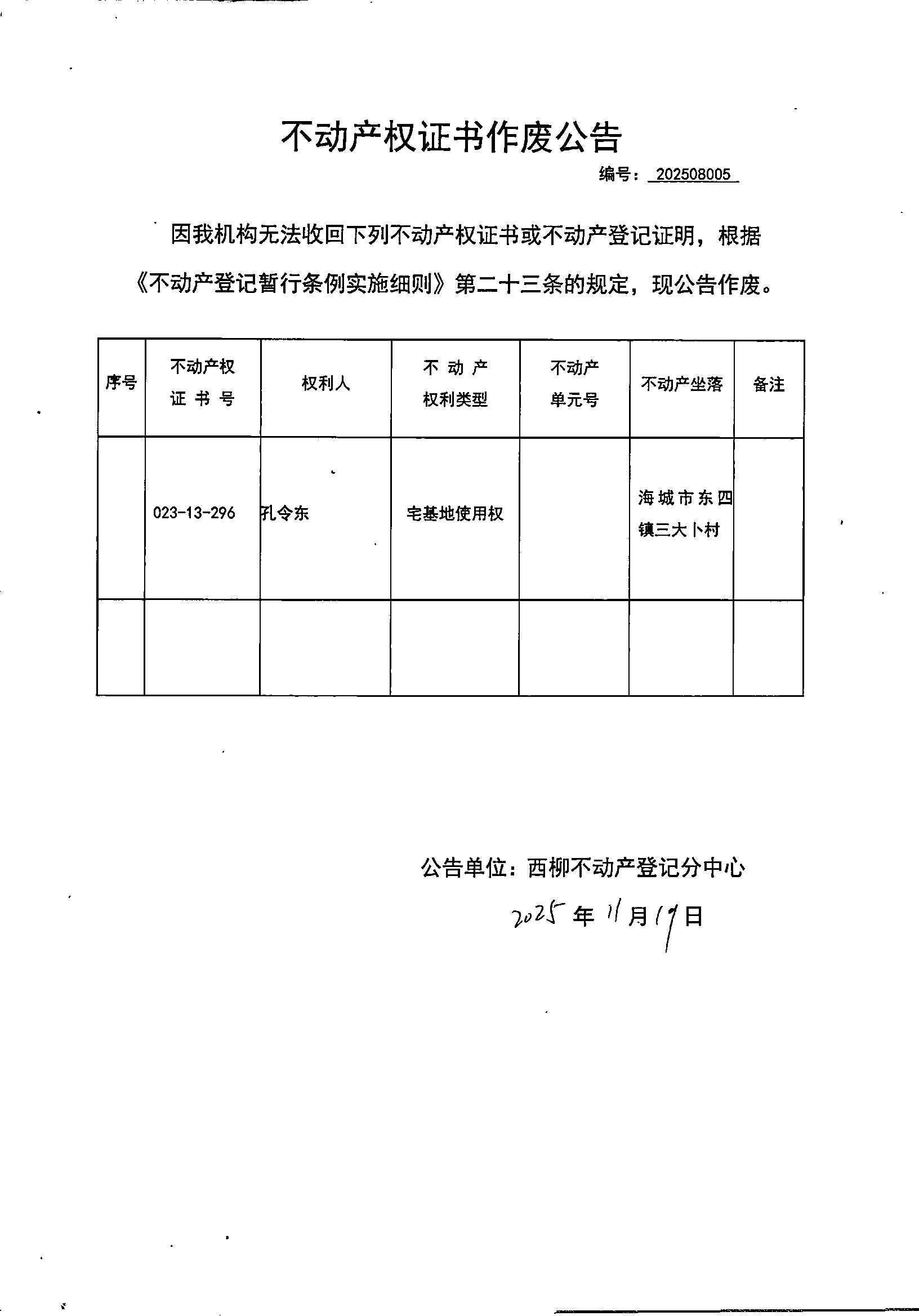 不动产公告