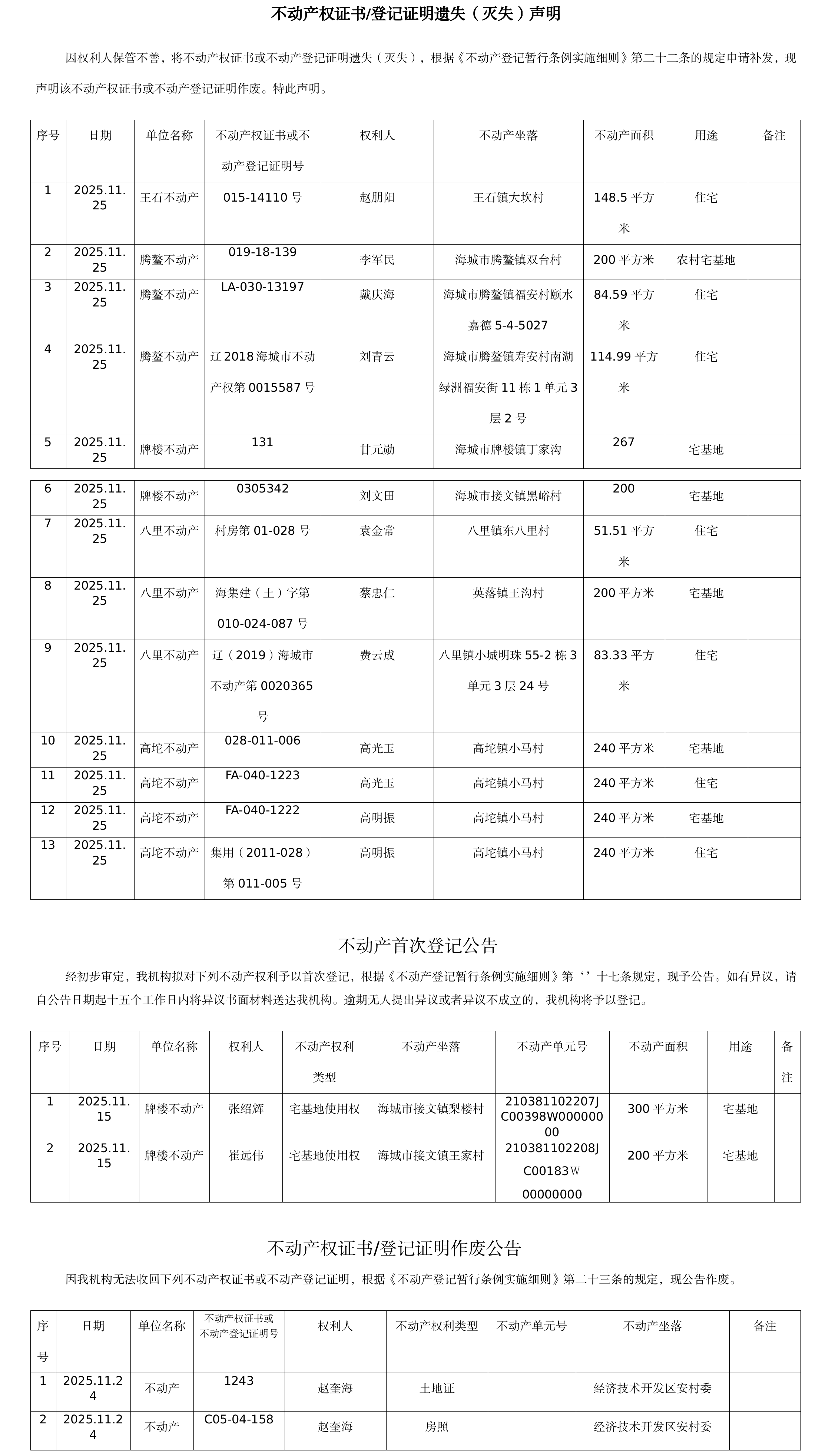 不动产公告