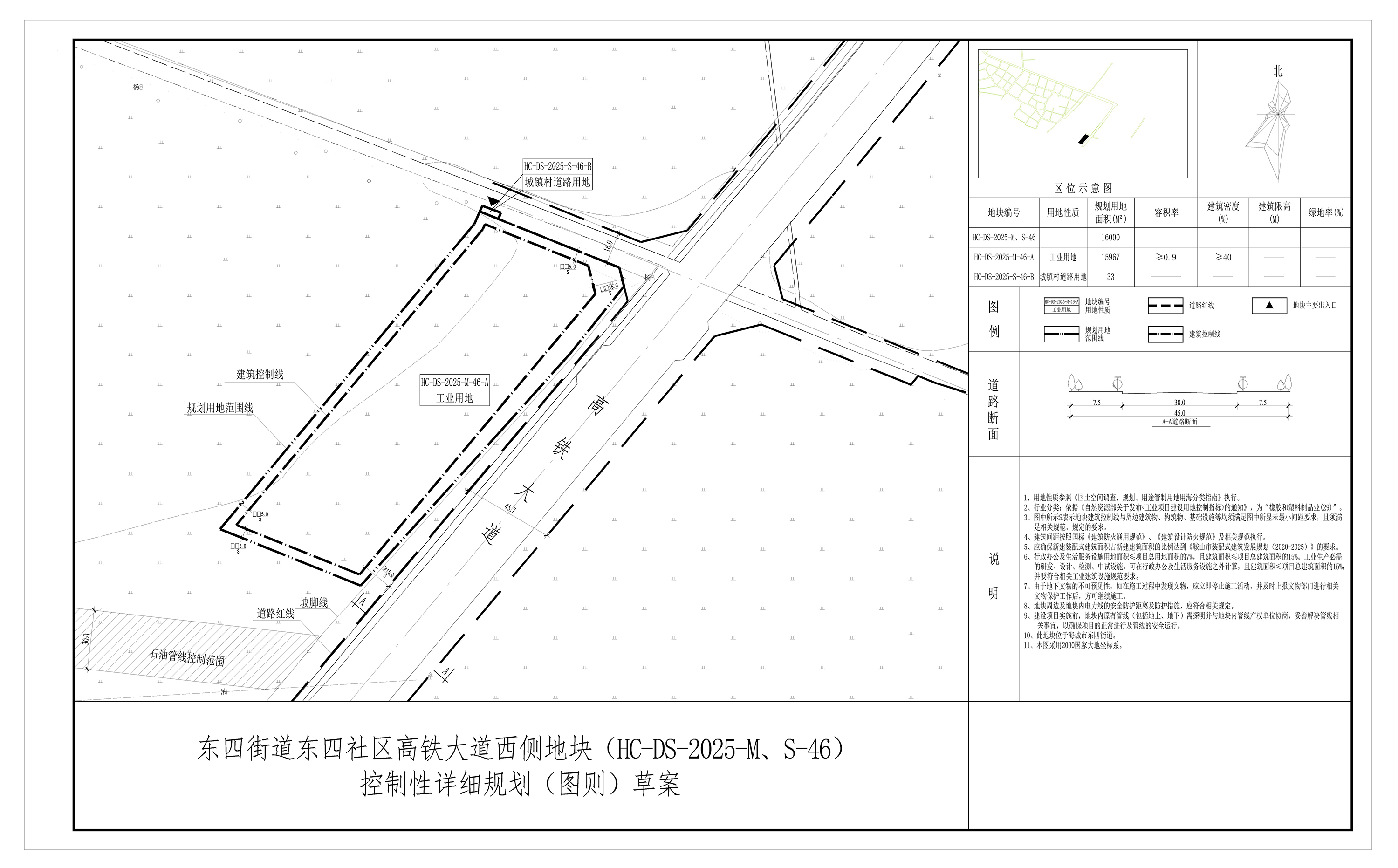 附件:东四街道东四社区高铁大道西侧地块(HC-DS-2025-M、S-46)控制性详细规划(图则)草案公告附图