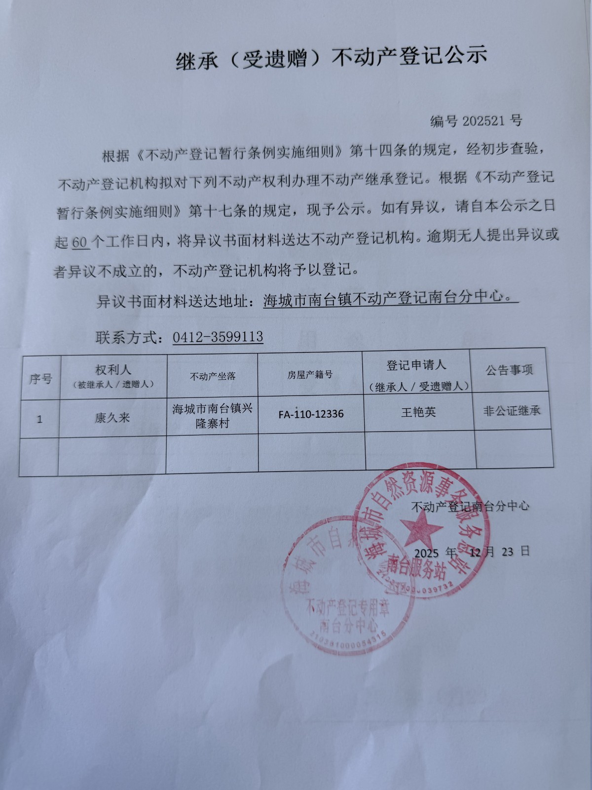 不动产公告