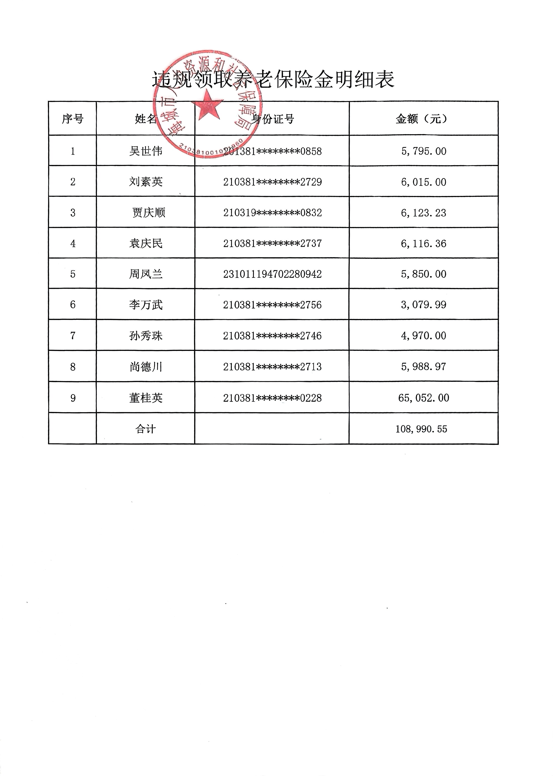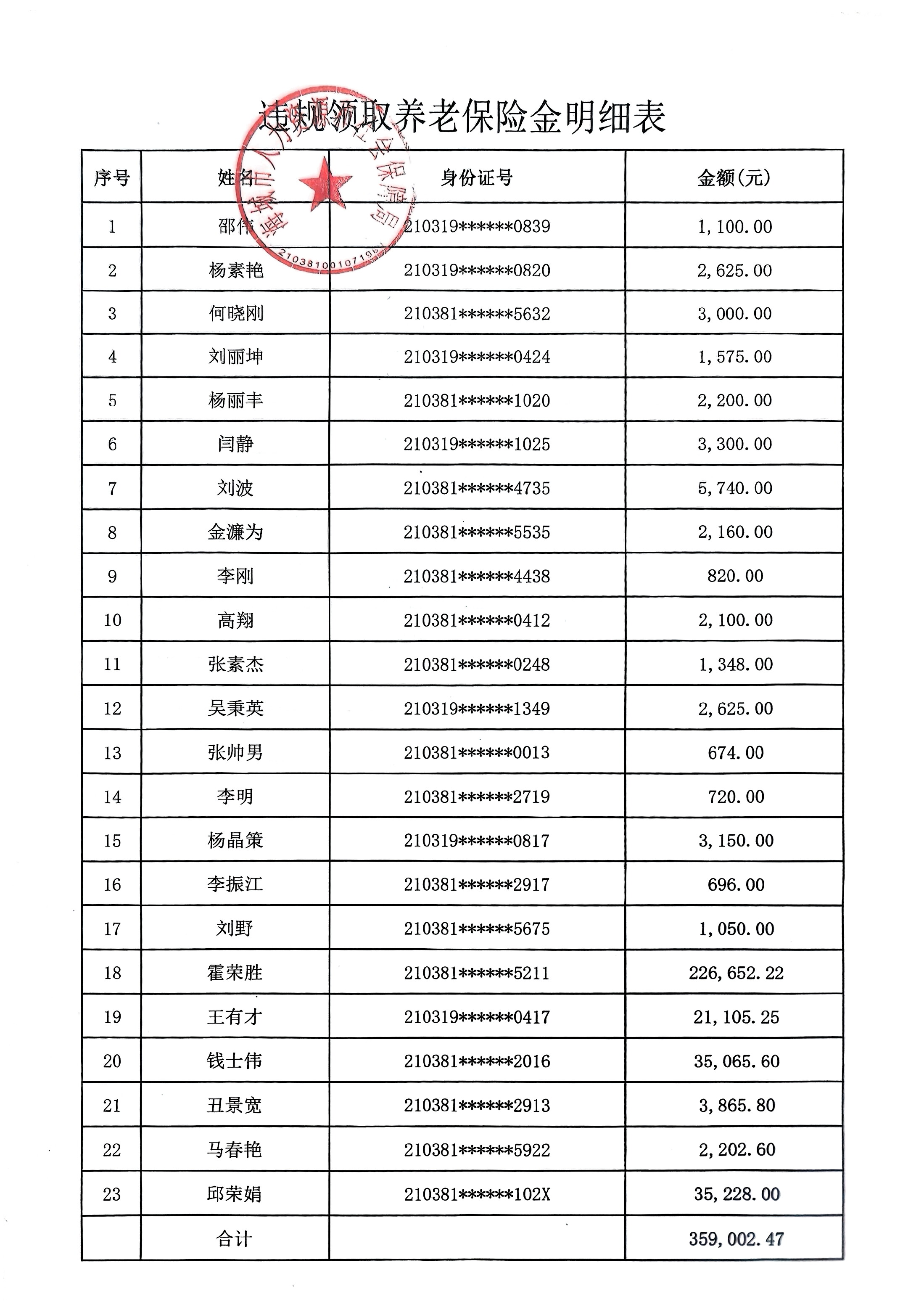 享受待遇人员邵伟等32人违规领取养老保险金,现根据《社会保险经办条例》第四十六条和《社会保险稽核办法》第十二条的规定,通知享受待遇人员本人及配偶或子女在收到本公告书之日起30日内将违规多领取的养老保险金退回至我人社局。