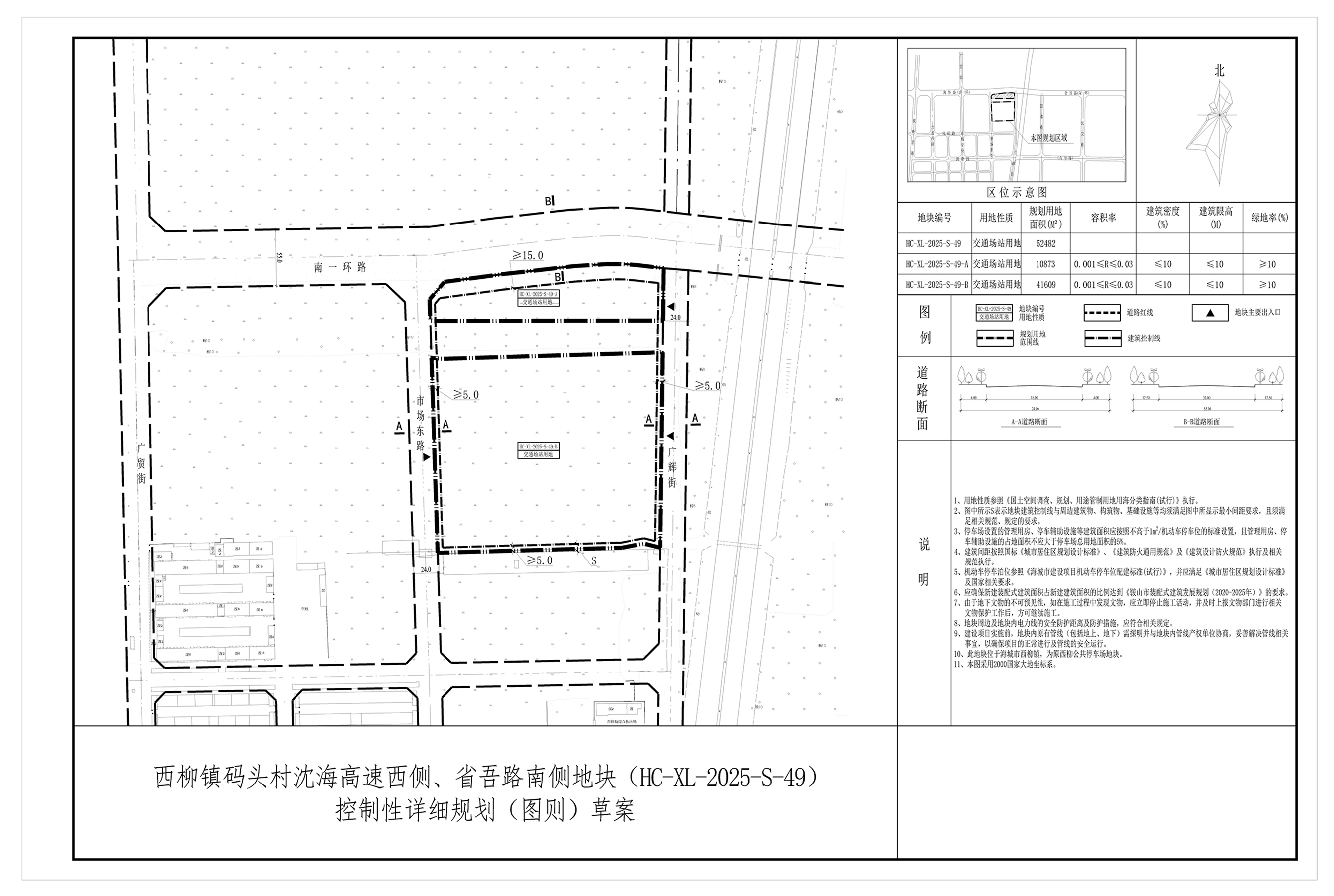 附件:西柳镇码头村沈海高速西侧、省吾路南侧地块(HC-XL-2025-S-49)控制性详细规划(图则)草案公告附图