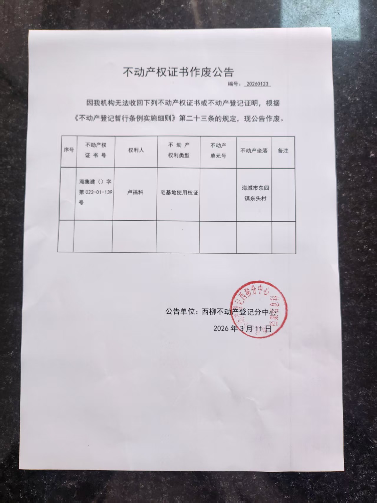 不动产公告